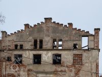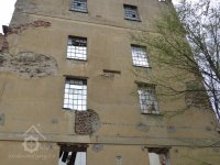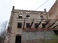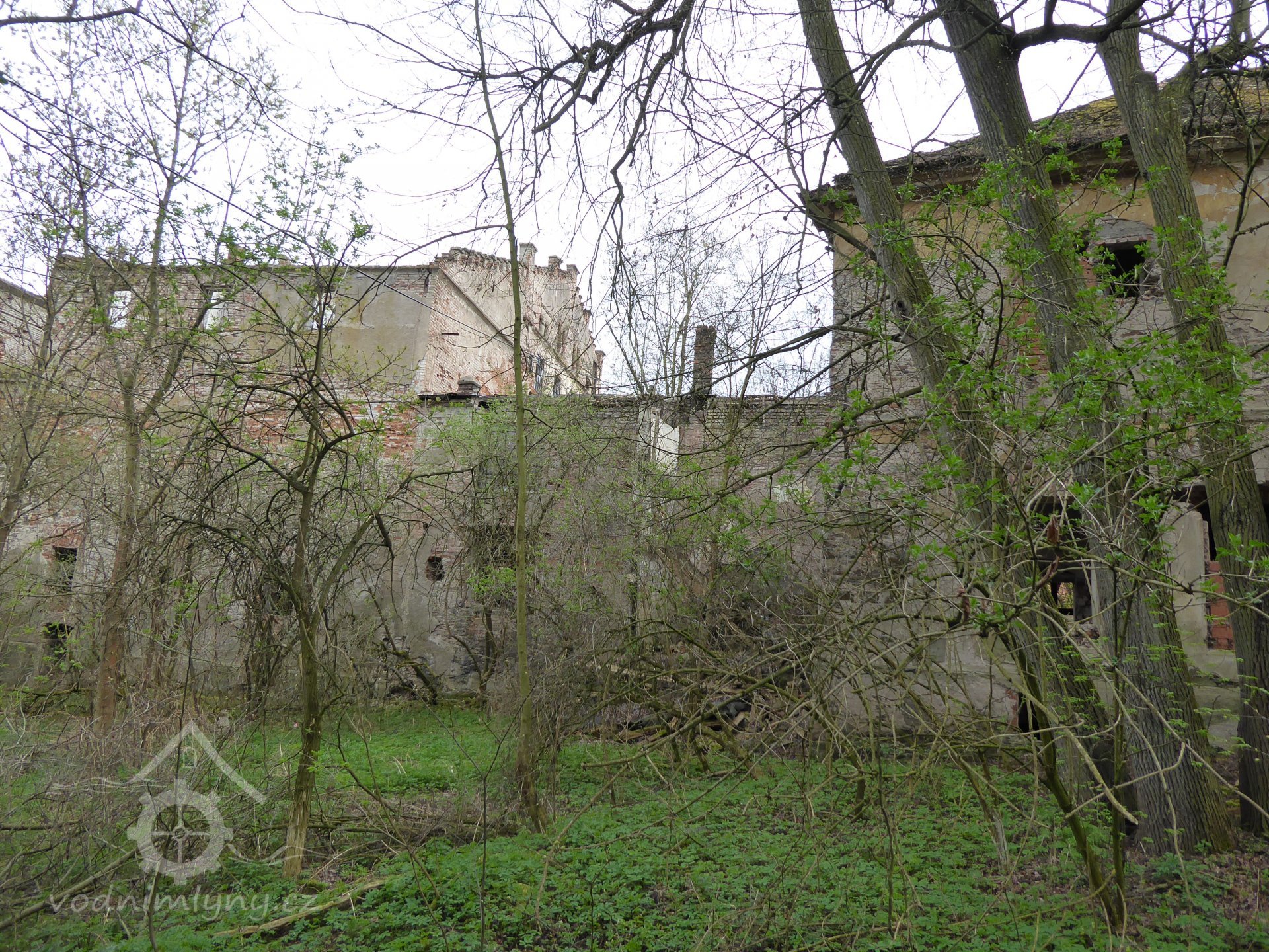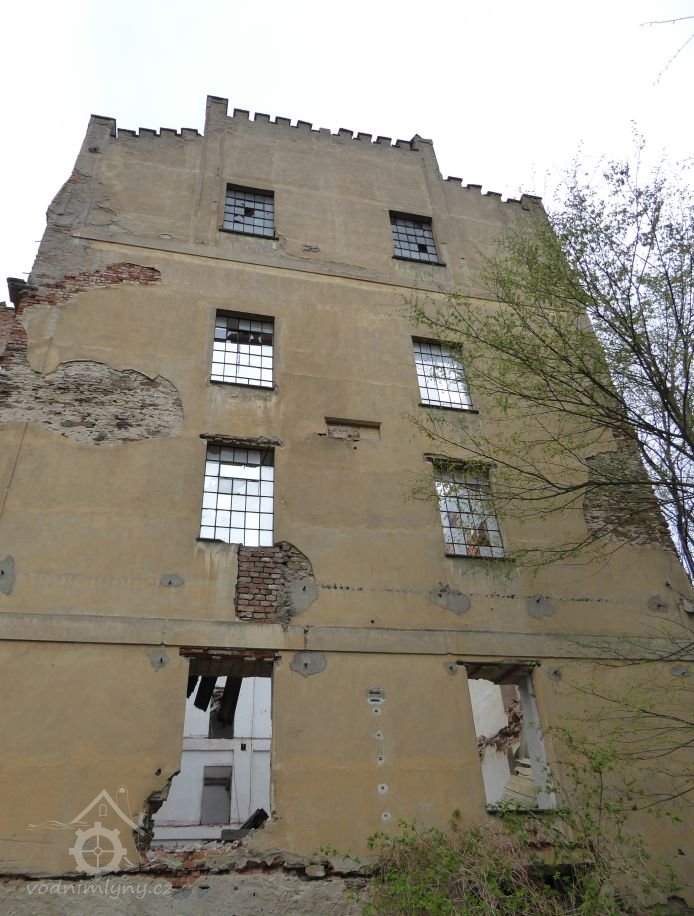 Budova mlýna je bez střechy, stojí jen obvodové zdi (stav 04 2018)