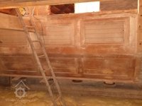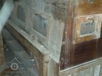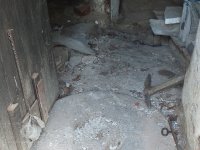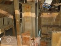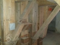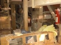 - dřevěný násypný koš nad šrotovníkem (umístěným v přízemí)