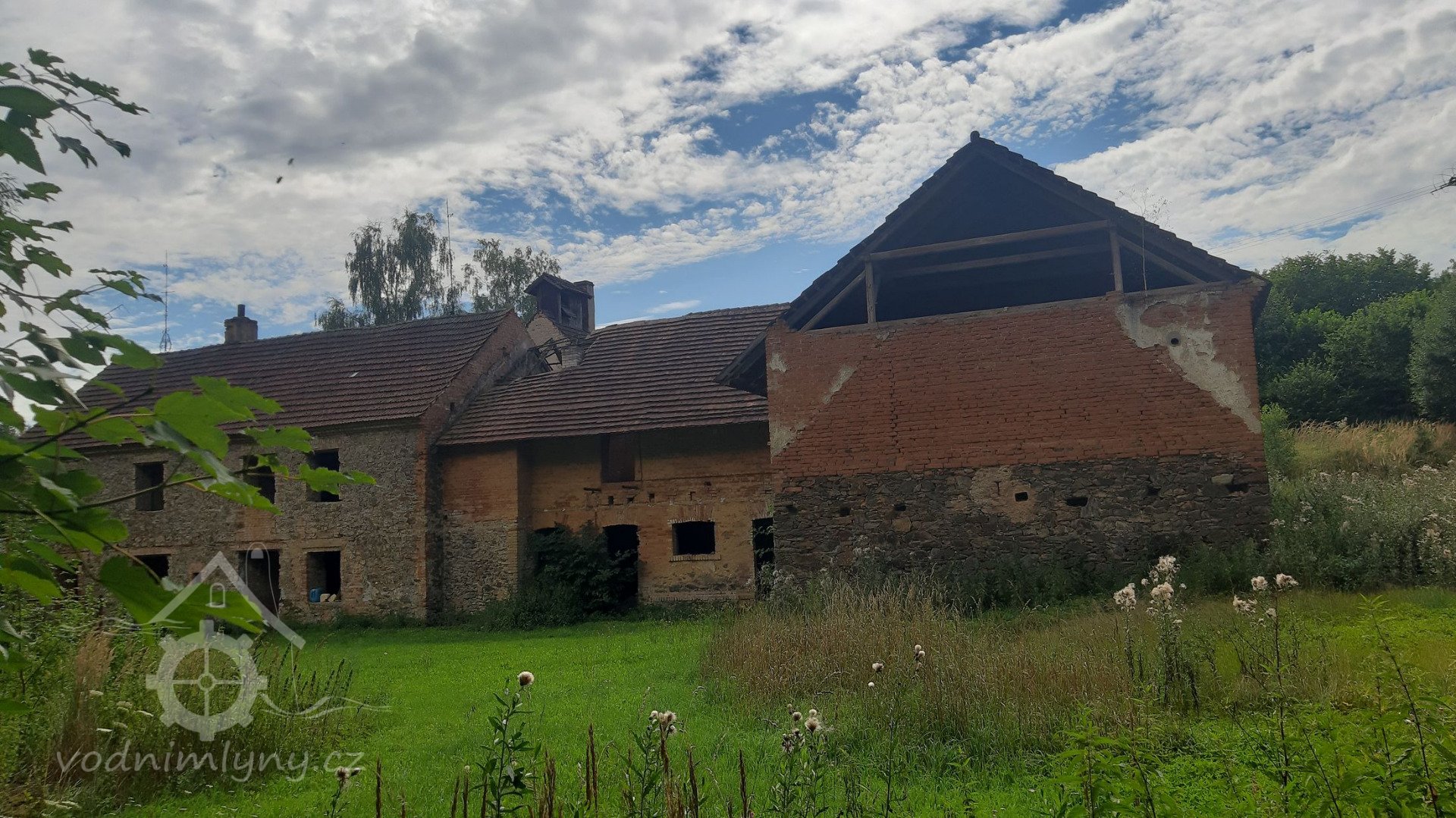 Starý mlýn s hospodářskými budovami na okrese Kralovice, pozdější obytná část na okrese Rakovník.