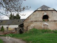 Ze tří stran uzavřený areál značně chátrajících budov. V budově bývalé stodoly (nebo snad mlýnice?) zachovány zbytky barokních ostění.