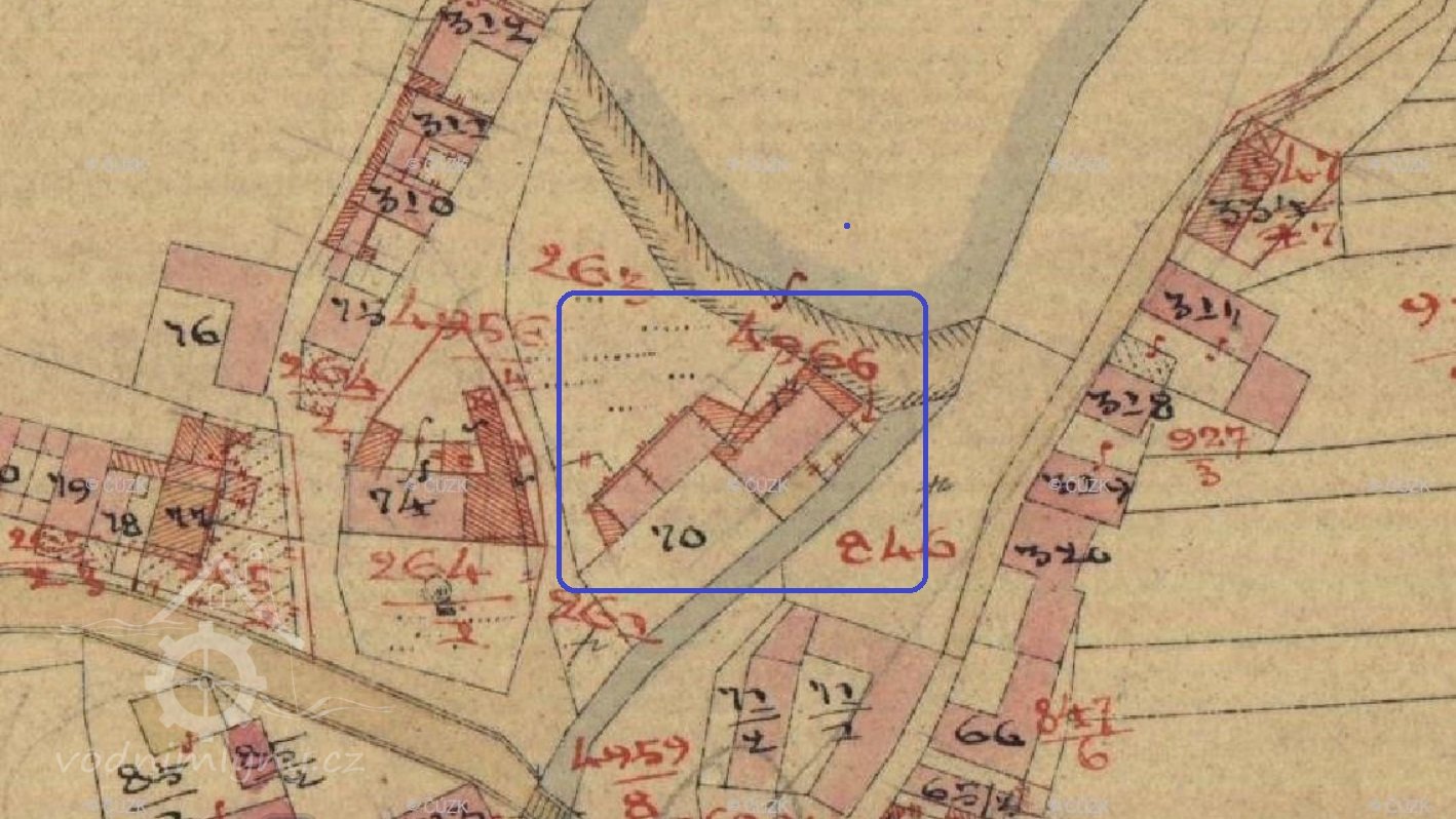 Popis1930: 1 kolo na svrchní vodu, hltnost 0,088 m3/s, spád 5,42 m, výkon 4,12 HP