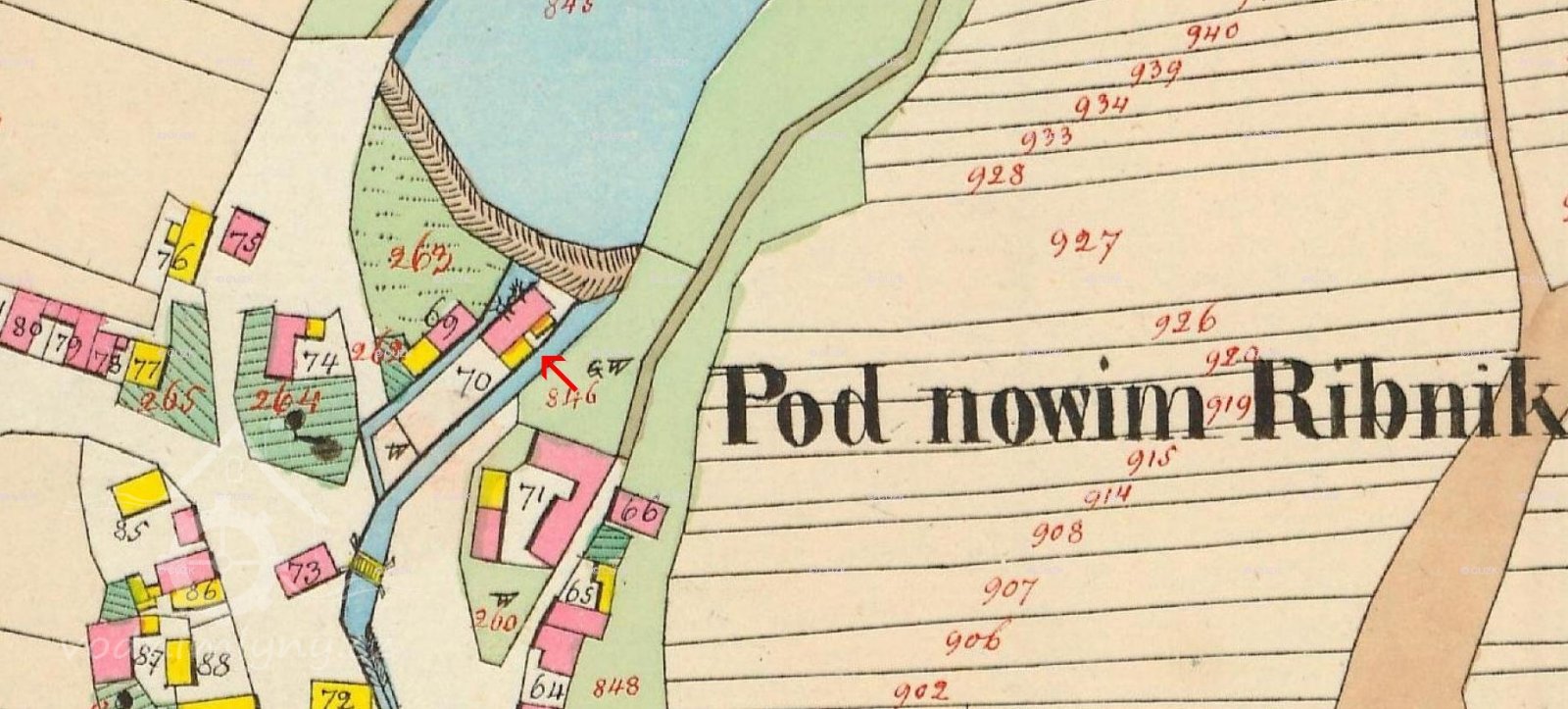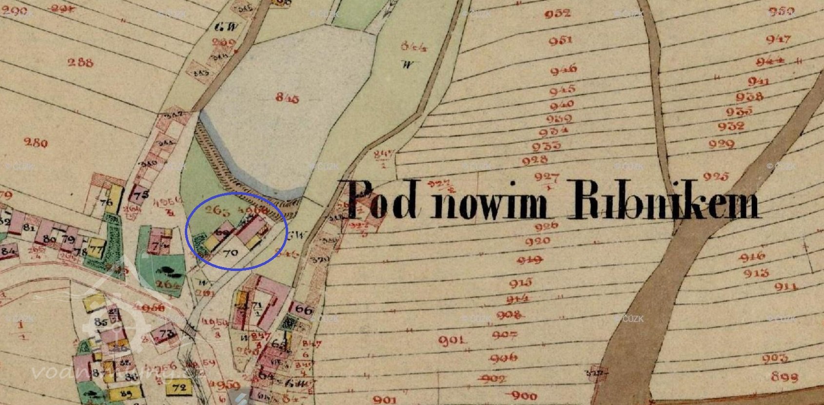 rybník č.parc.845 přijímá odpadní vodu z rybníka č.parc.840 náležícího pí. Karolině Loucké