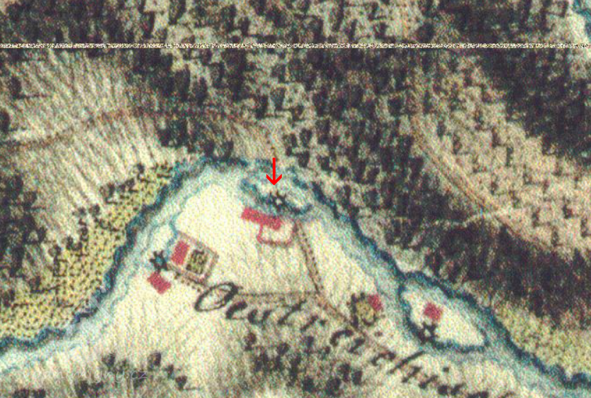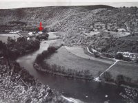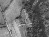 Na leteckém snímku z roku 1952 stojí mlýn ještě nepoškozen, zničen byl tedy až v pozdější době. (LR)