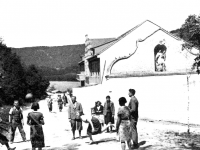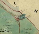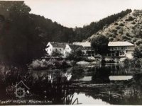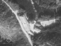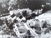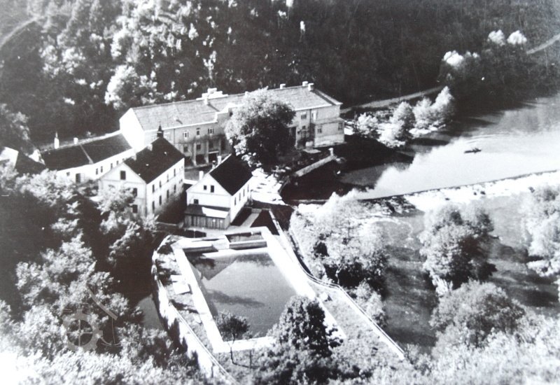 Na leteckém snímku z roku 1952 je mlýn - hotel zachycen ještě nepoškozen, zanikl tak až v pozdější době. (LR)