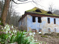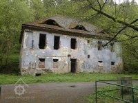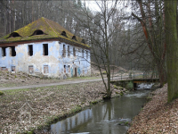 Chátrající budova mlýna bez technologie a hospodářských budov.