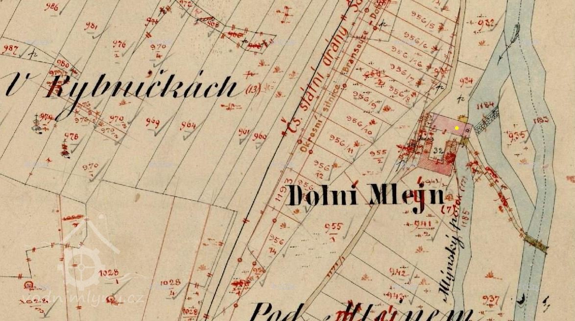 Popis1930: 1 kolo na spodní vodu, hltnost 0,959 m3/s, spád 1 m, výkon 6 HP