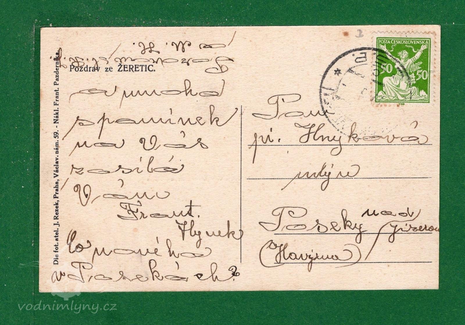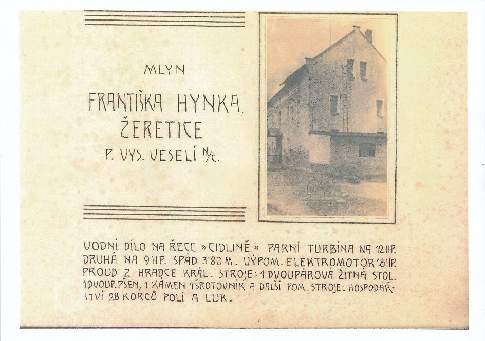V r. 1910 byl majitel mlýna Alfréd Purkrábek.