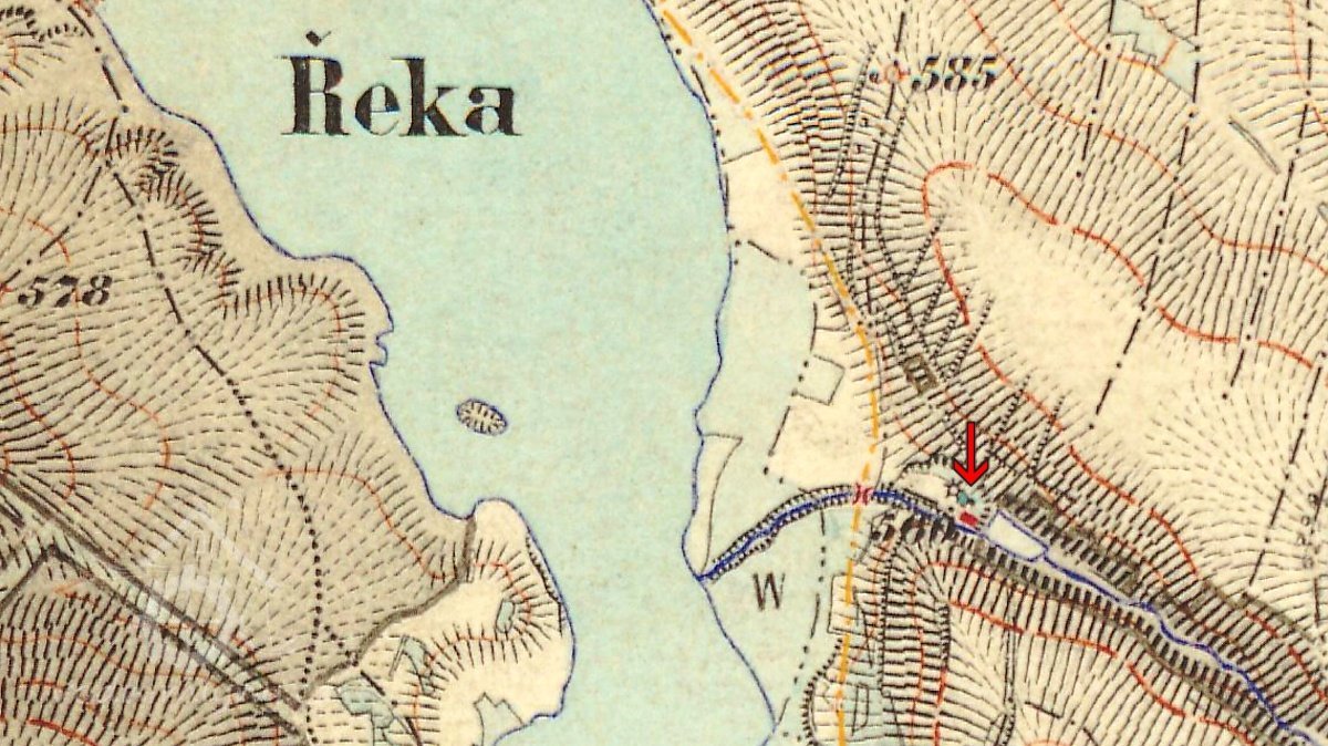 cca 1 km severně od obce Hluboká