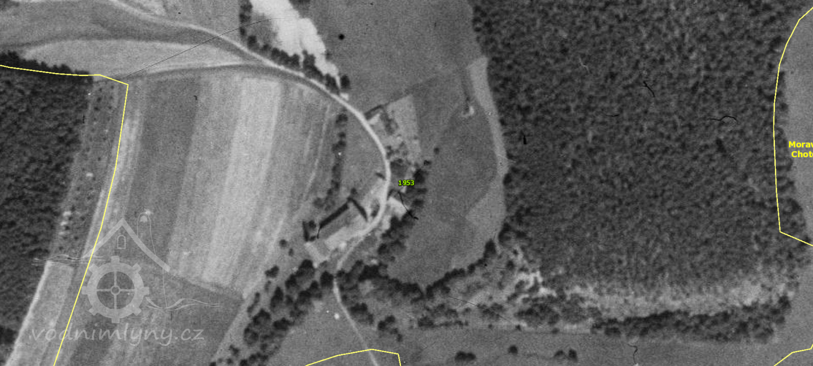 Po mlýně, který tu byl už v polovině 17. století zůstalo pár kamenných zdí, vyschlá nádržka a náhon. Přesný popis historie mlýna známe z Historického místopisu Borotína od R. E. Cikhardta. Obecní kronika Borotína uvádí jako majitele v roce 1932 Františka Pecháčka s poznámkou, že mlýn byl zrušen.