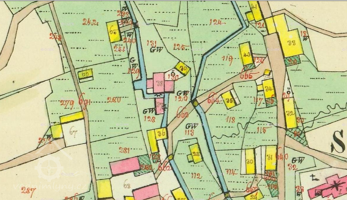 V r. 1930 zde byla pila a elektrárna Josefa Siegela