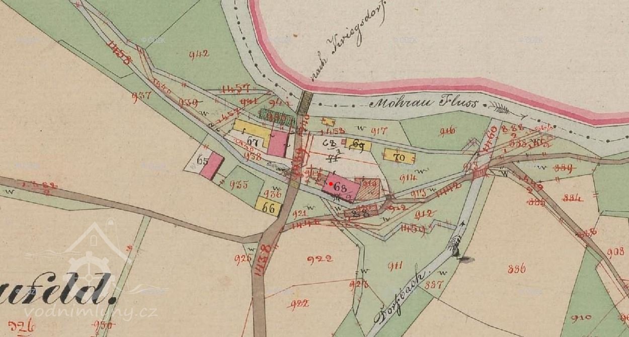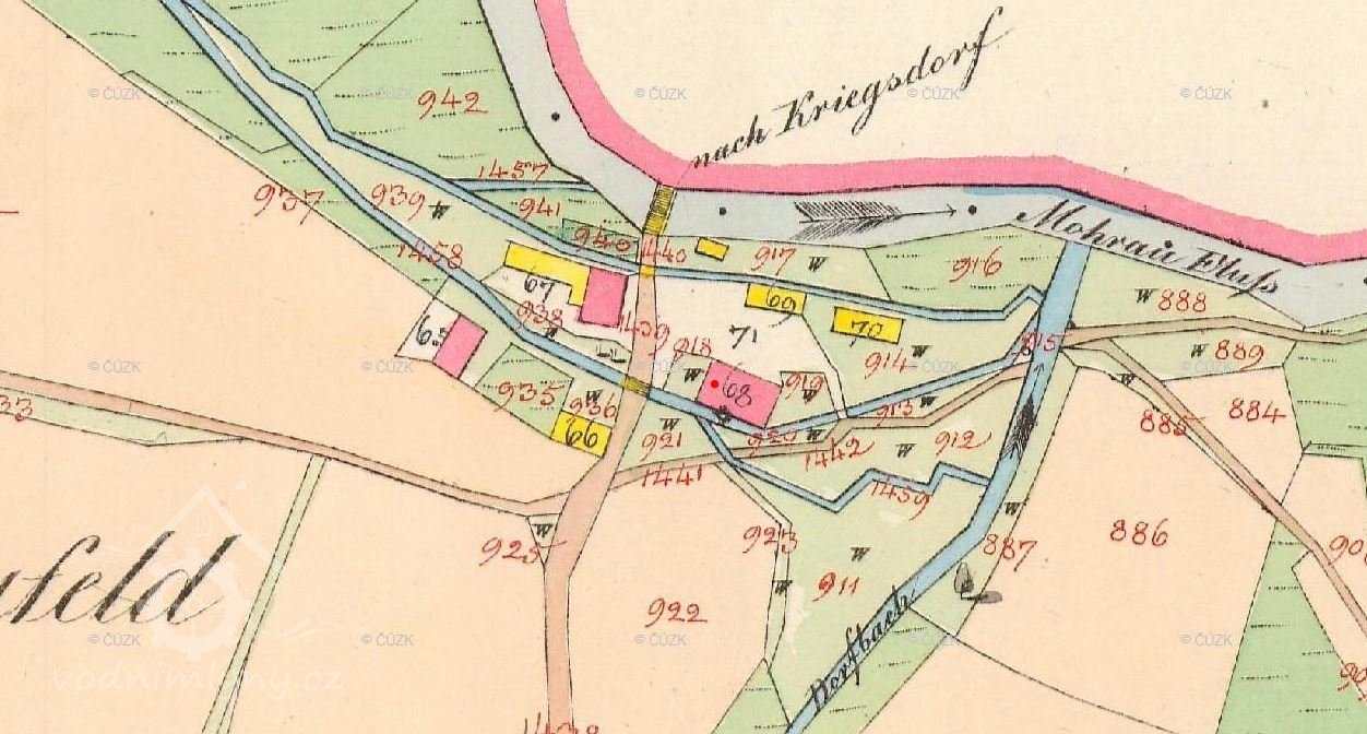 1876 Kolaudace nového jezu na řece Moravici v Tylově nivelačním úřadem a smír s Aloisem Niessnerem, mlynářem ve Valšově.
