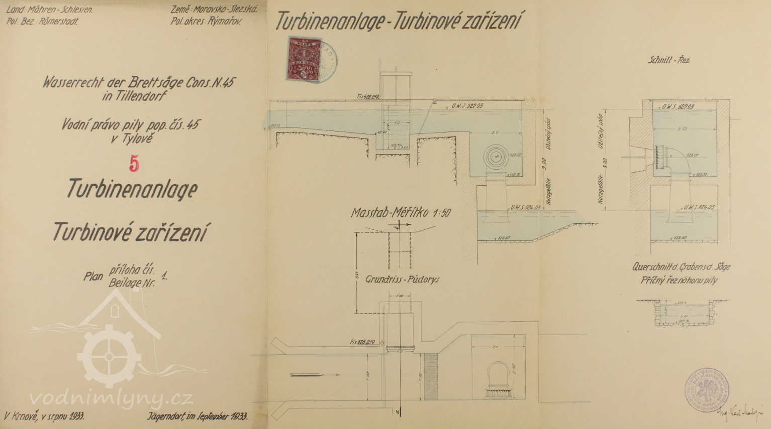 2. 7. 1858 Povolení Okresního úřadu v Rýmařově pro mlynáře Philippa Olbricha v Tylově jakožto poručníka nezletilého Floriána Langera ke stavbě pily u jeho mlýna č .p. 44.