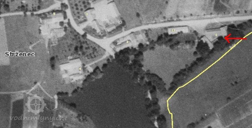 Mlýn pod Strženeckým rybníkem. První zmínka z r. 1773. Původně mlýn o jednom složení, 1896 mlýn vyhořel a byl přestavěn na 1 francouzské a 1 české složení. V r. 1915 byl mlýn restaurován. Ve mlýně se mlelo do jara 1952. Dnes je v katastru veden jako zemědělské stavení.