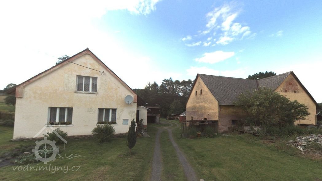Bývalý mlýn v obci Habartice. Stodola postavena nebo opravena v r. 1936. Ve stěně obytného domu to vypadá na stopy mlýnských kamenů.