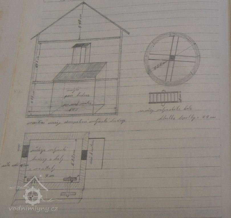 Popis1930: 2 kola na svrchní vodu, hltnost 0,17 m3/s, spád 3 m, výkon 4,4 HP