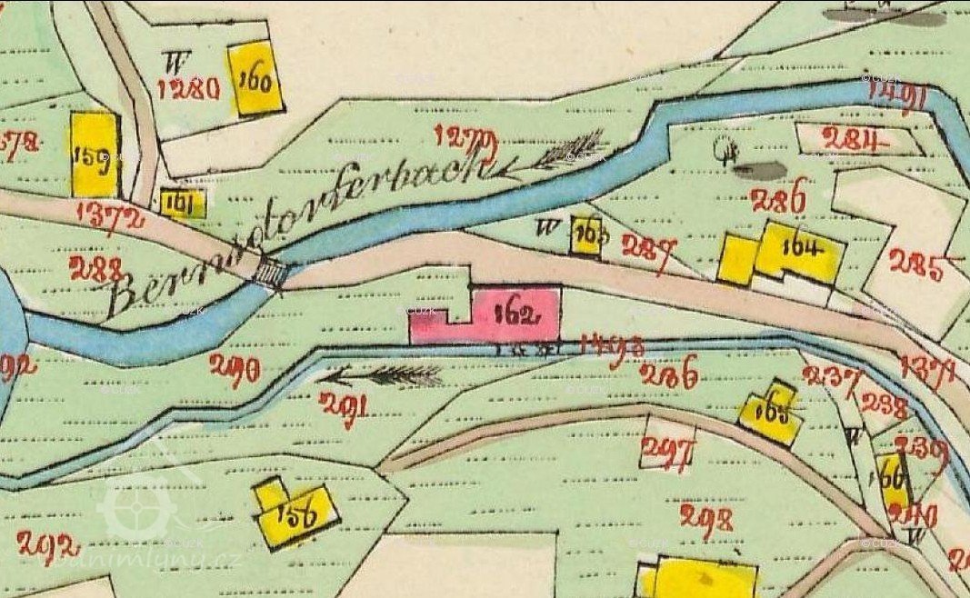 PopisV r. 1930 zde bylo 1 kolo na svrchní vodu, průtok 0,091 m3/s, spád 4,4 m, výkon 3,5 k.