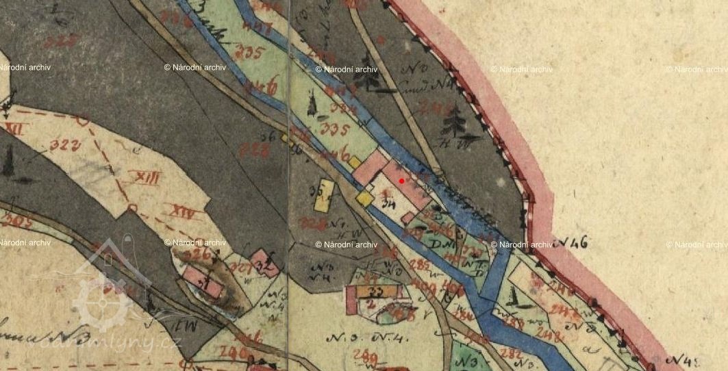 PopisV r. 1930 zde bylo 1 kolo na svrchní vodu, průtok 0,268 m3/s, spád 3,69 m, výkon 9,23 k.