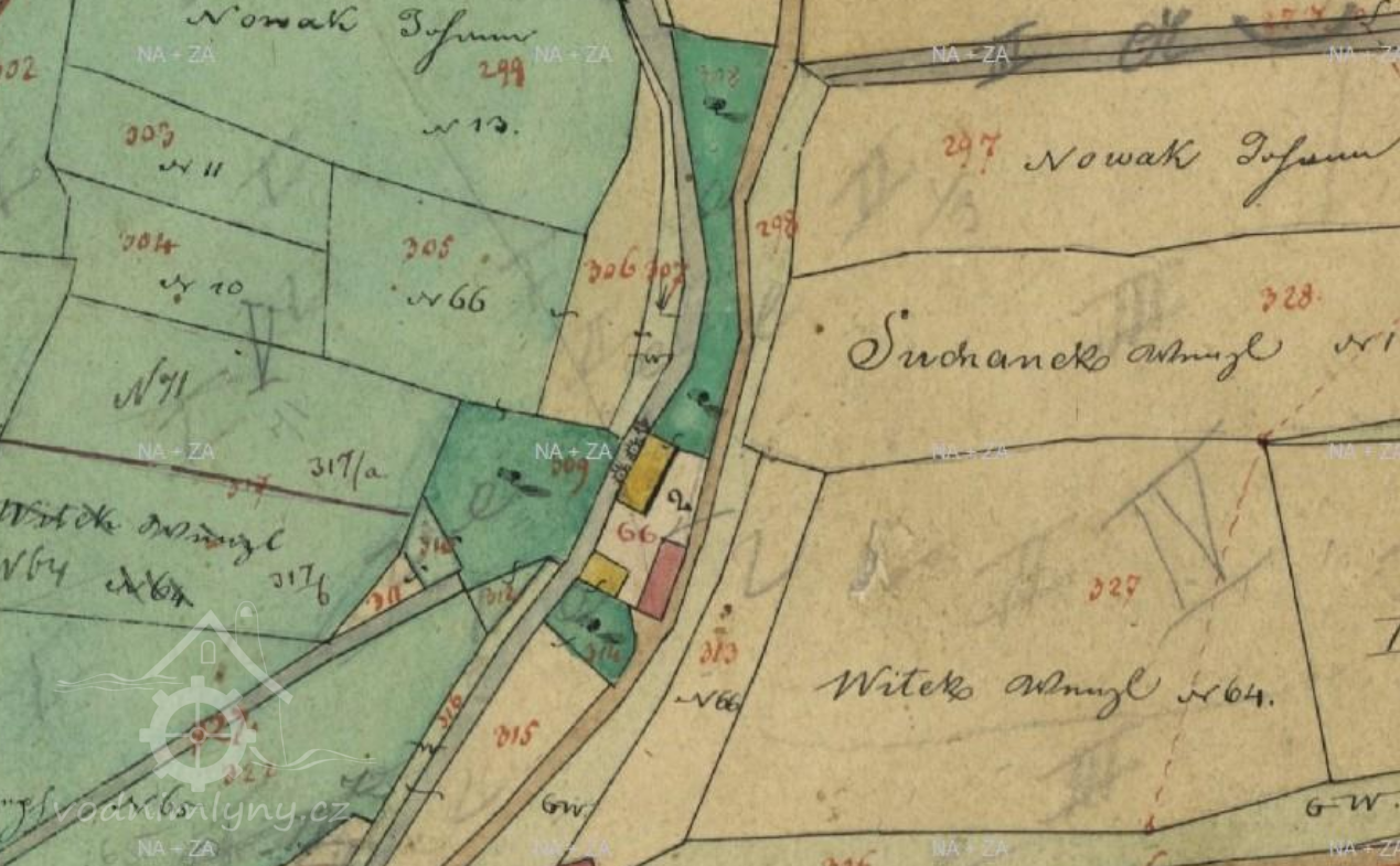 Mlýn držel v r. 1506 a 1521 mlynář Dušek.
