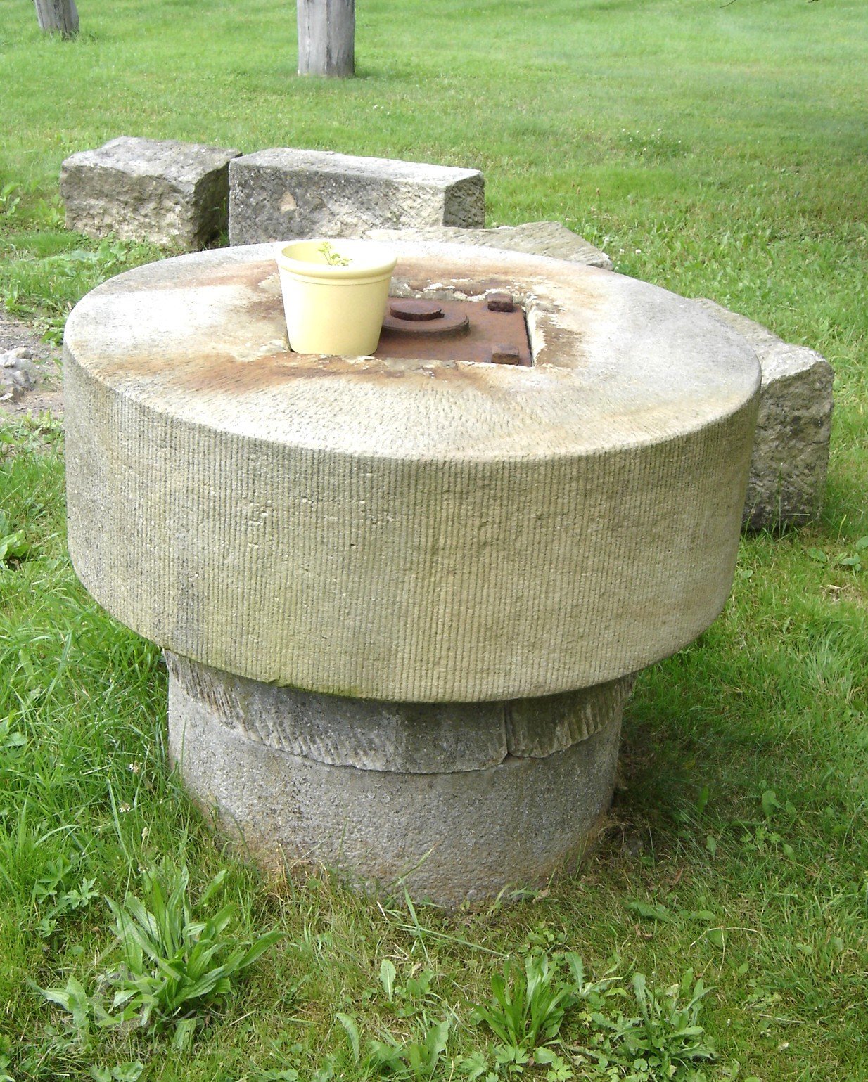 Na dvoře mlýna dochován kámen z krupníku (holendru).