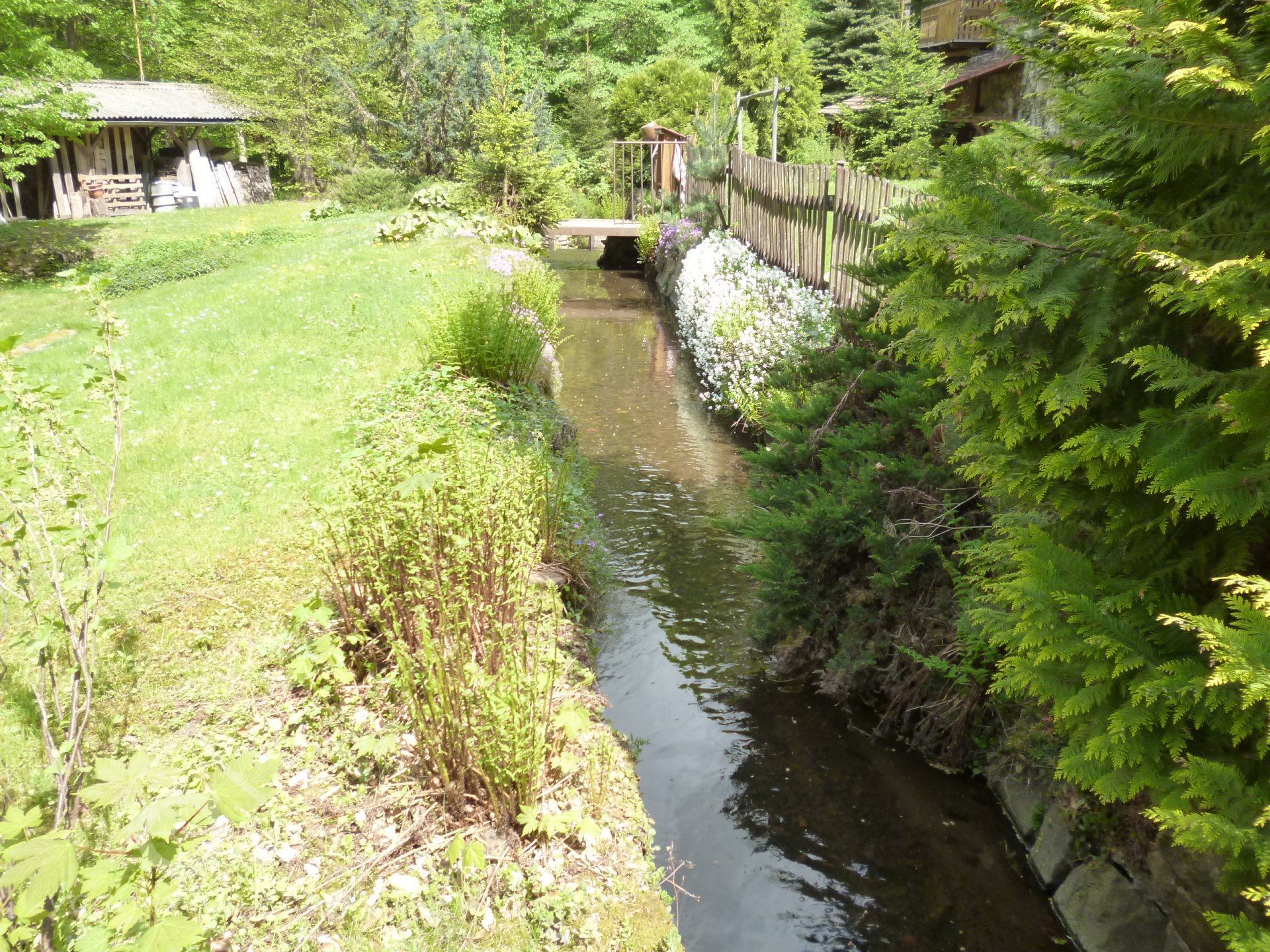 Náhon z Chrudimky odbočoval u jezu doprava ve vzdálenosti asi 350 m nad mlýnem. Odtok od mlýna se vracel do řeky přibližně po 50 m.
