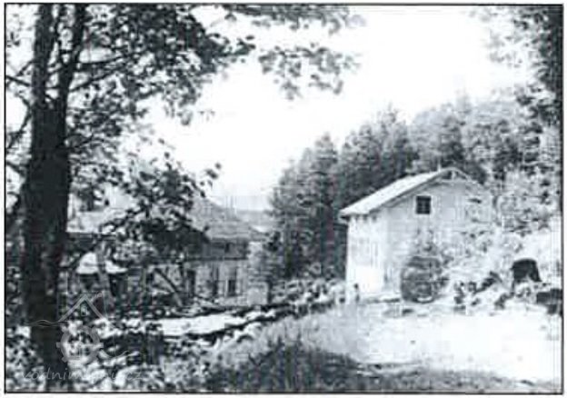 Celkový pohled vlevo na betonové koryto náhonu, mlýnici a vpravo na pozůstatky vedlejší mlýnské budovy, 2012, © Petr Bílek, www.zanikleobce.cz