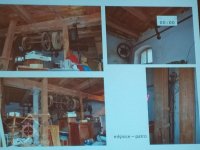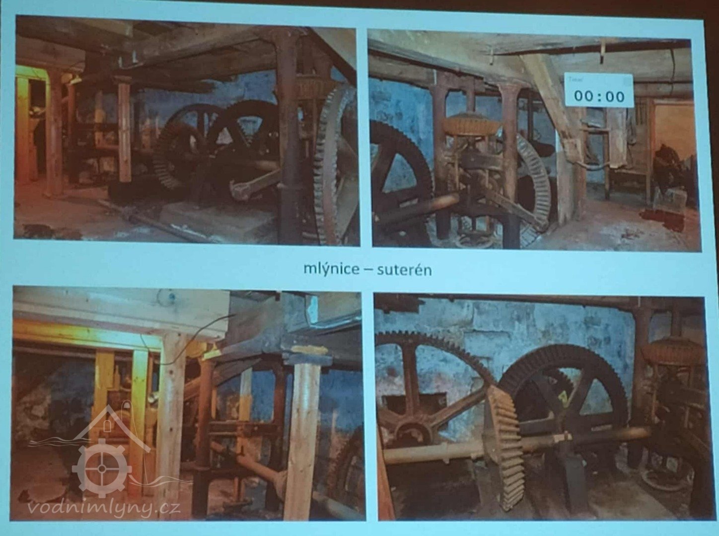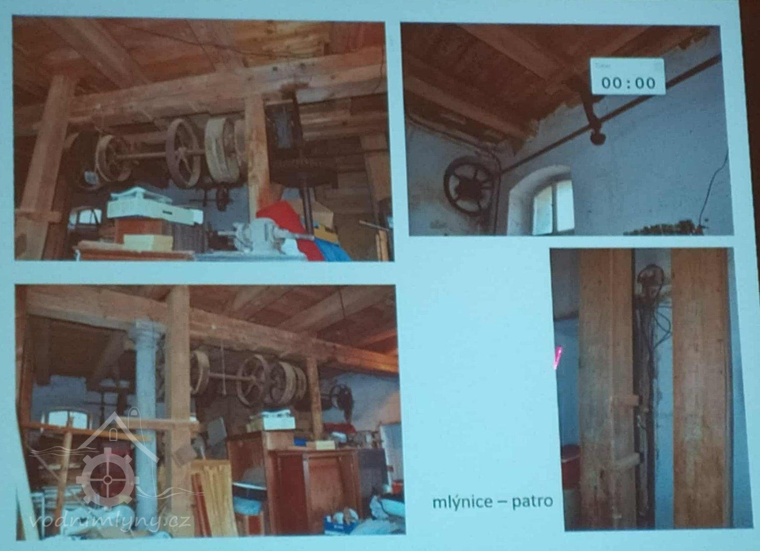 1934/35 vodní kolo na horní vodu (průměr 2,92 m, světlá šířka 2,18 m, 35 lopatek, max. 8 HP, norm. 3,8 HP, spád 3 m, 12 ot/min., spodní část se brodí)