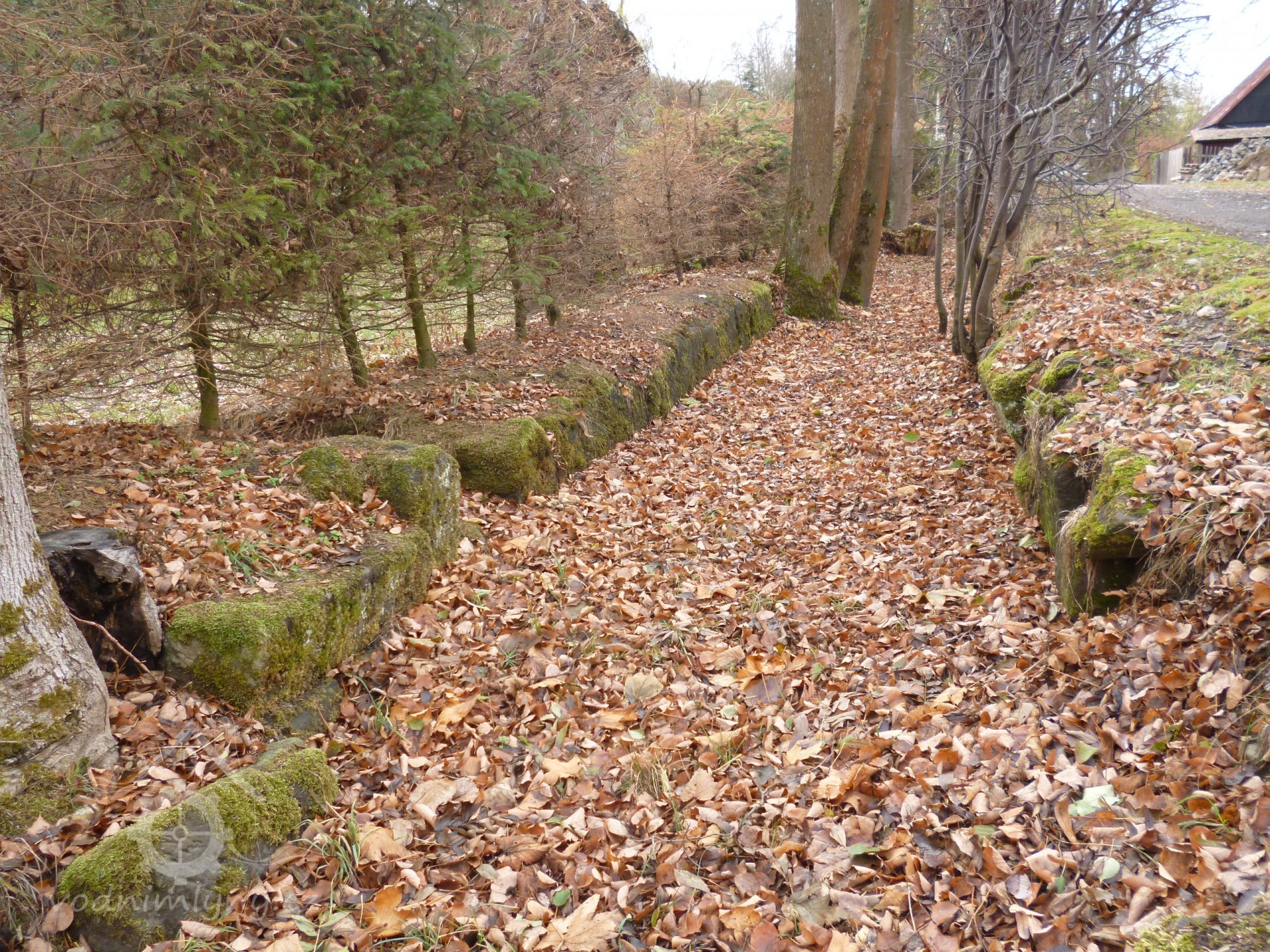 Náhon odbočoval z potoka doleva, nejprve tekl v korytě po povrchu, před mlýnem vedl tunelem vytesaným ve skále. Odtok od mlýna se asi po 200 m vracet do potoka.