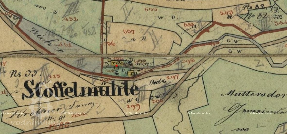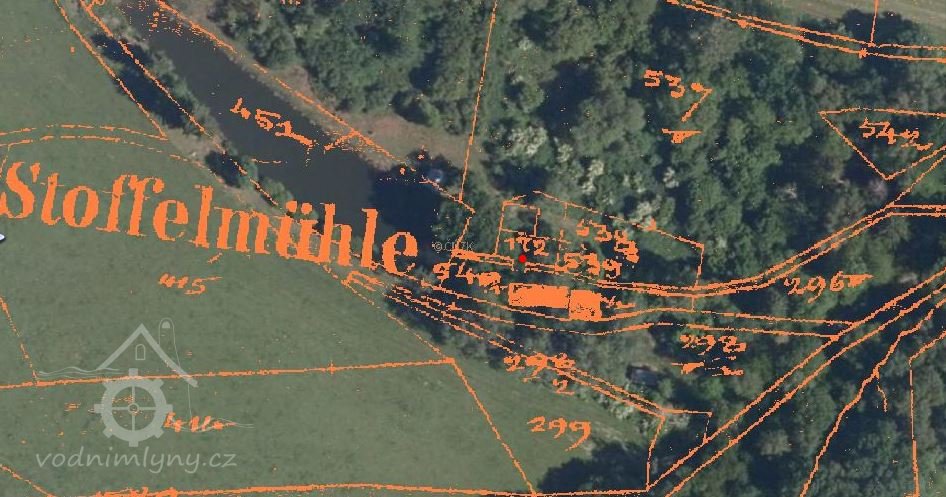 Stával téměř 2 km západně od centra obce, měl jeden byt, mlýn s pilou a stodolou, velká ovocná zahrada, pozemek 4,63 ha. Stál už v roce 1615.
