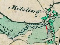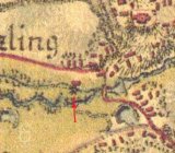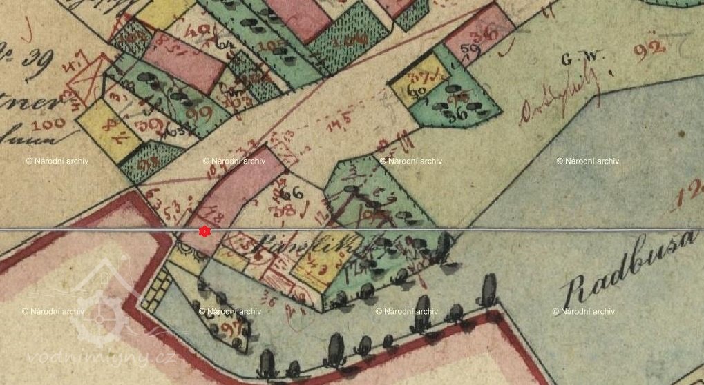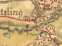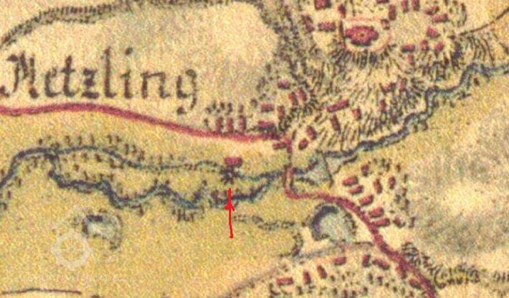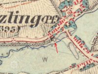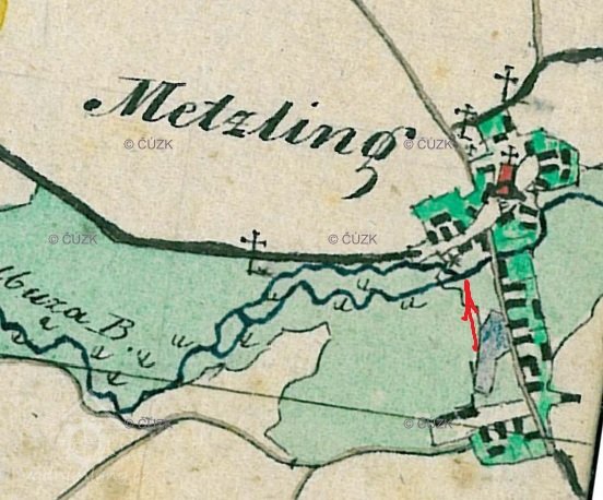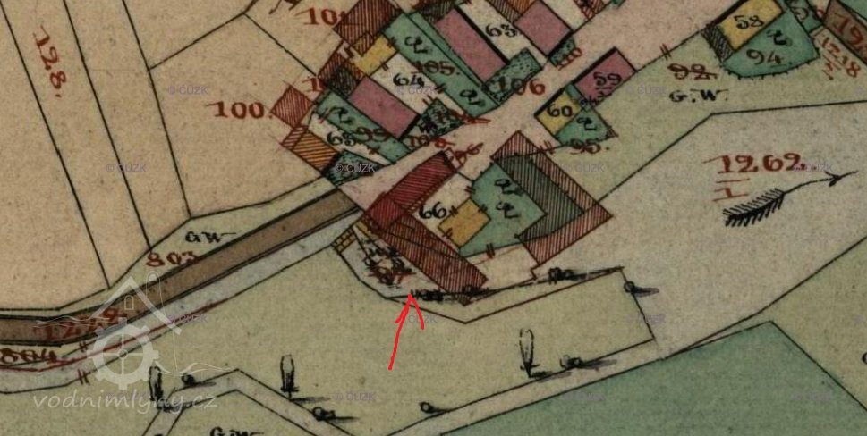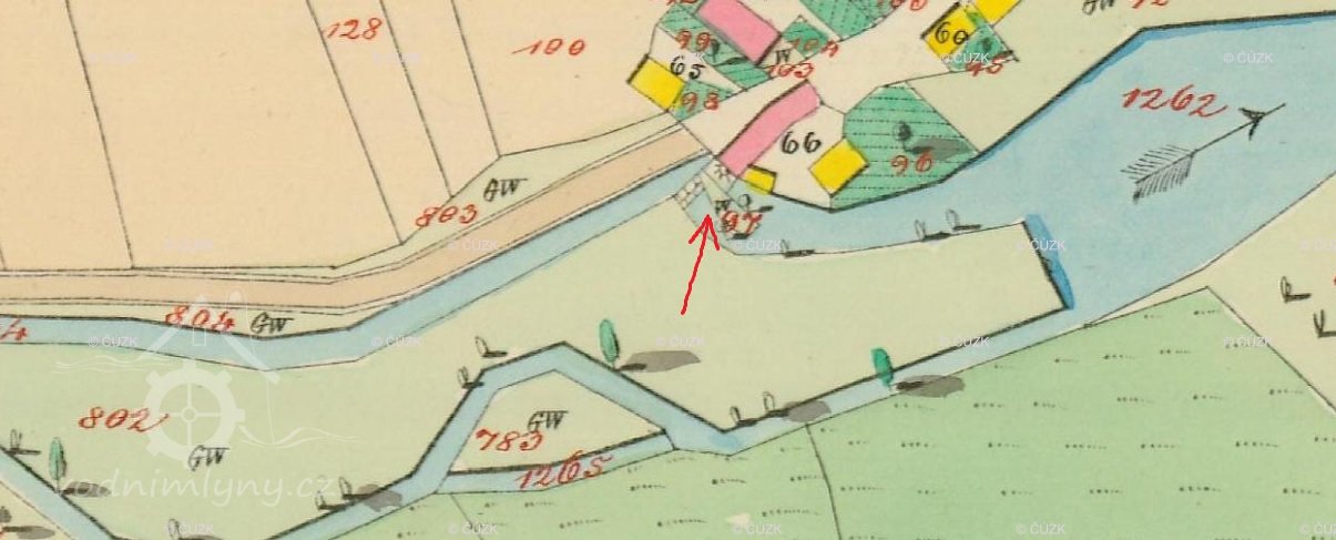 Zobrazen na I. vojenském mapování – josefském 1764-1768 a 1780-1783. Císařský povinný otisk stabilního katastru 1838 – dlouhý náhon, dlouhá nespalná budova s jedním kolem, menší dřevěný přístavek, další spalná budova, za areálem menší rybníček, na skice z téhož roku stejný stav, dvě kola, zaznamenány změny stavby, majitelem Josef Pavlík. Na originální mapě již přestavěná budova mlýna do písmene L, naproti ní zrcadlově umístěná další a mezi nimi malá spalná budova.