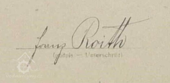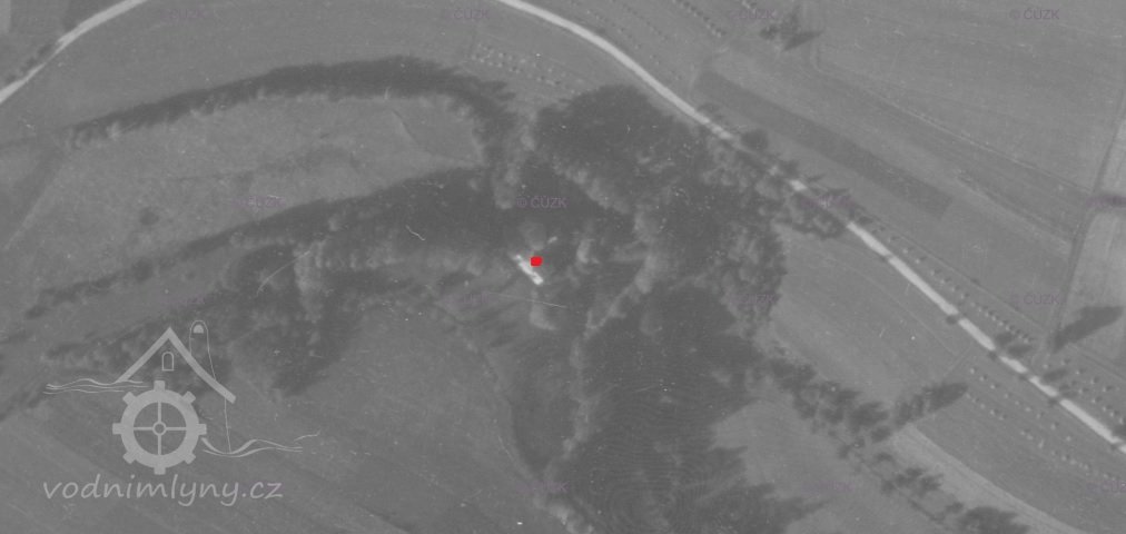 1838 – na otisku stabilního katastru je zakreslen náhon od rybníka, nespalná budova s jedním kolem, krátký odtokový kanál, za potokem ještě jedna spalná budova, na skice je vidět rozšíření budovy a změna trasy části náhonu před budovou, majitelem Franz Roith