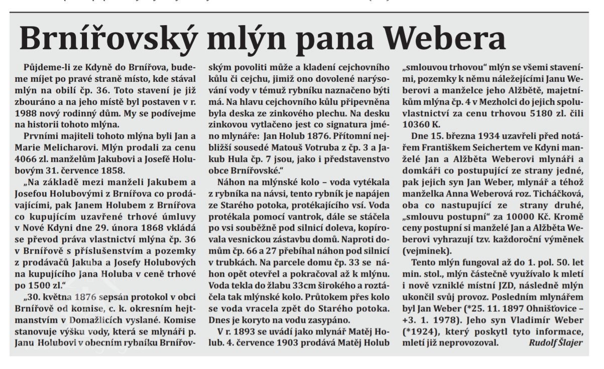 31.7.1858 Jan a Marie Melicharovi proidali mlýn za 1066 zl. Jakubovi a Josefě Holubovým