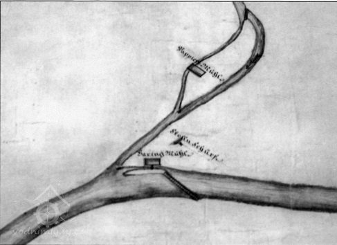 Mlýn je zakreslen na staré mapě stříbrských hornických děl z roku 1779.