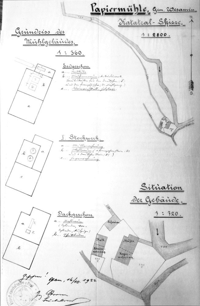 Vodní dílo bylo původní založeno jako papírna, která byla později přestavěna na moučný mlýn.