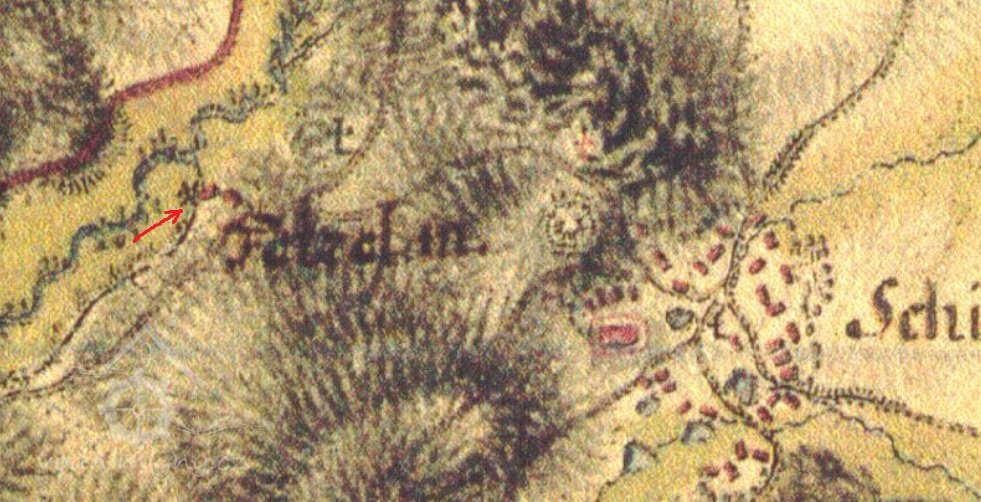 Z rozměrné stavby se zachovaly zbytky zdiv. Patrová budova o rozměrech 15 x 30 m byla rozdělena na 3 oddělení. V okolí stavby i v jejích zříceninách se objevuje hlína promísená červeným brusným práškem. Z tzv. zámečku, položeného na terénní hraně blíže šitbořské cesty, zbývá pouze zvlněné místo. V blízkosti zámečku stávala kaplička, která byla zbořena společně s budovami mlýna.