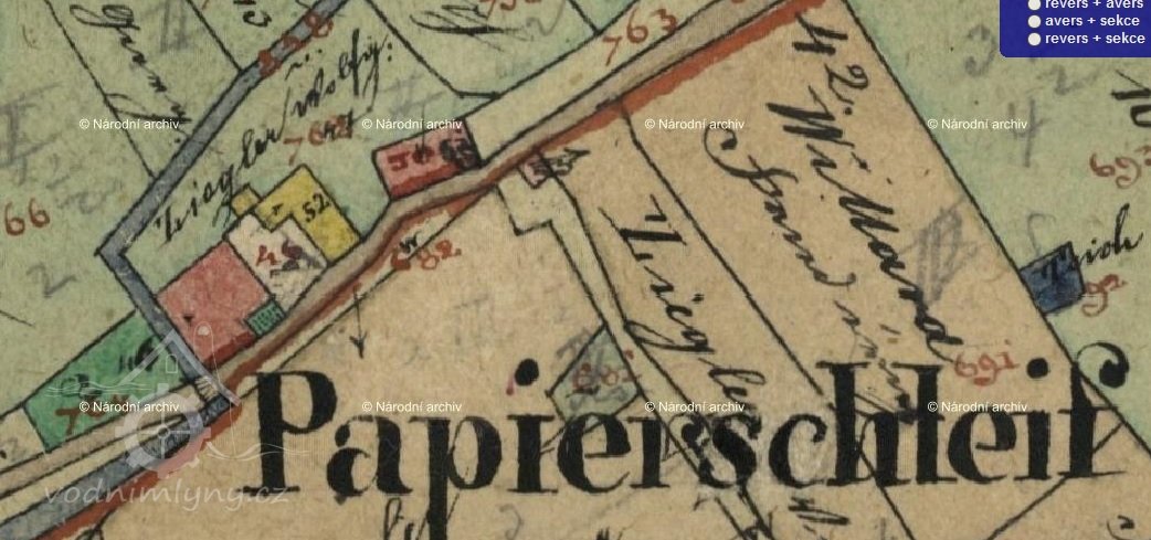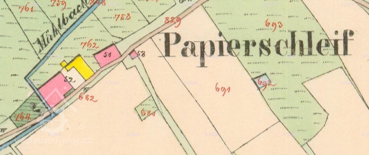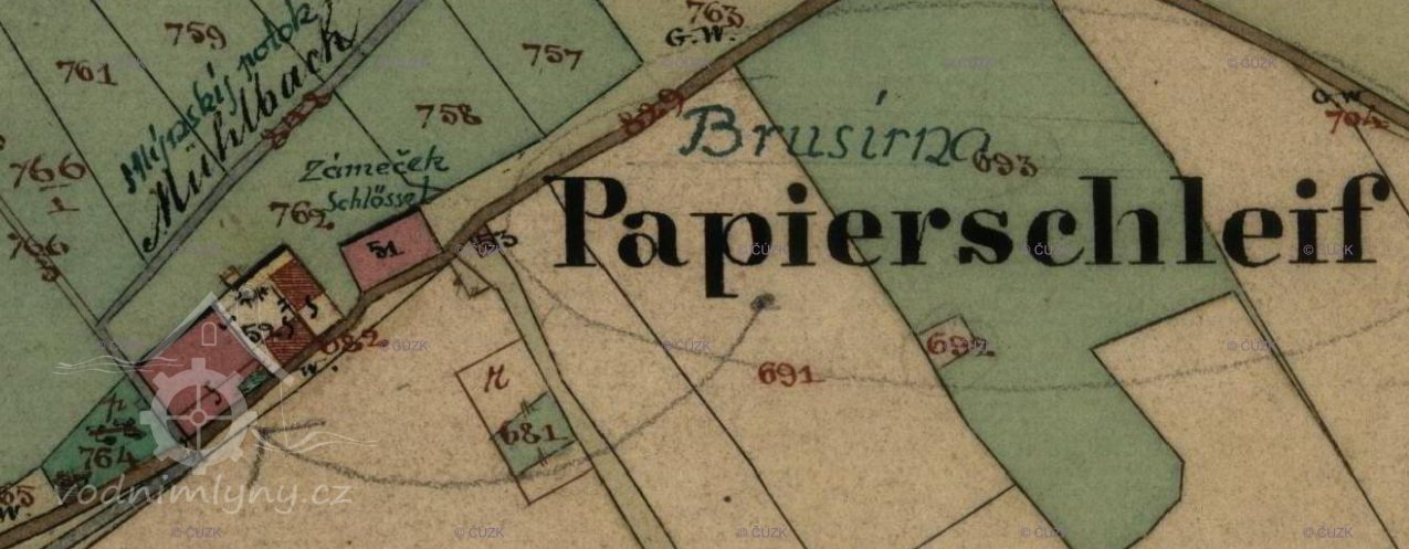 Petráňův mlýn, Horní šitbořská leštírna; Papierschleife, Schlösschen