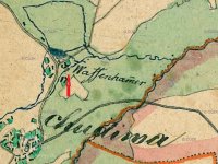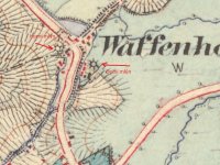 1838 – na originální mapě stabilního katastru je jedna obdélníková nespalná budova s jedním kolem a jedna spalná obdélníková budova s jedním kolem, majitelem Andreas Beil, označeno názvem Waffenhammer.