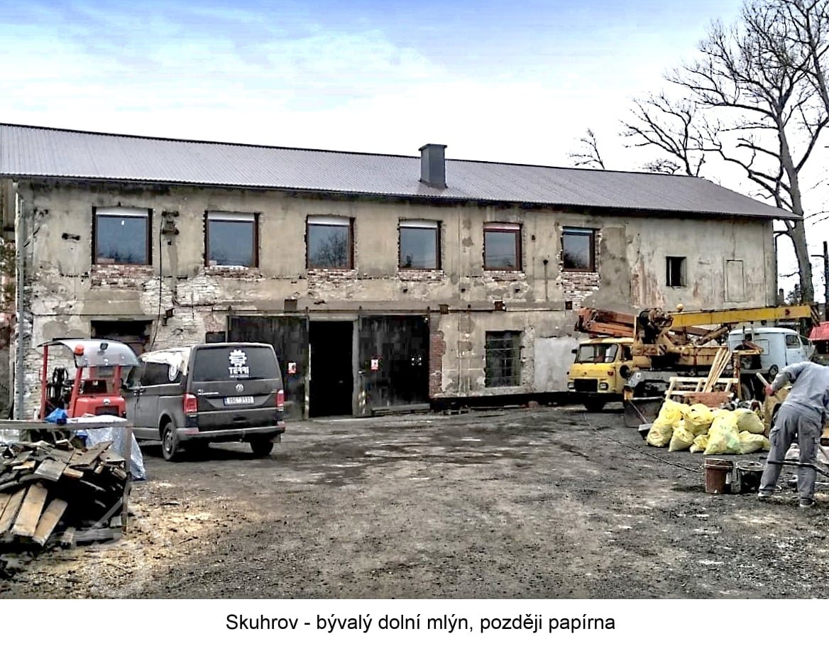 Dolní mlýn ( později papírna ) ve Skuhrově, obec Velký Borek.