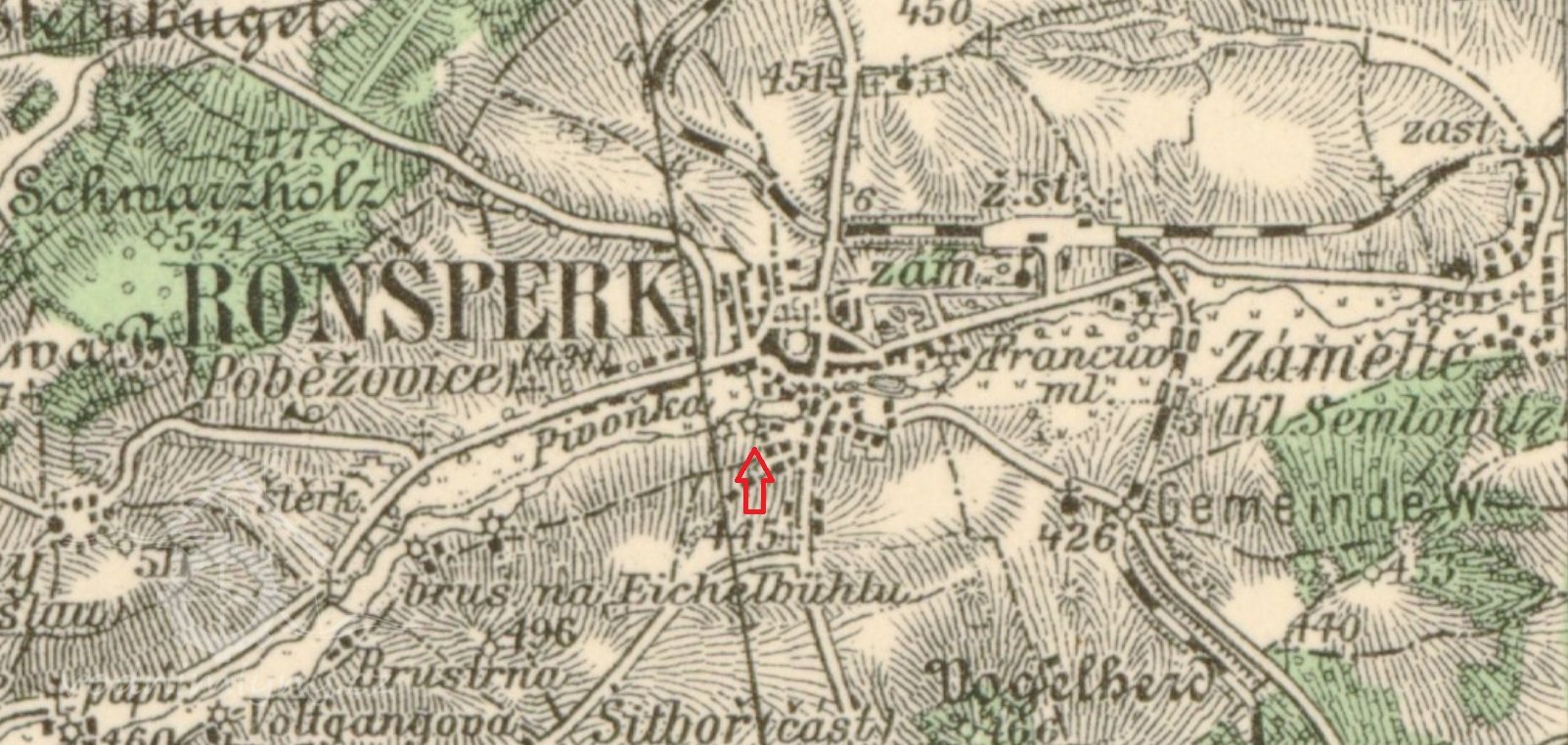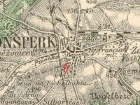 Podle leteckého snímku ještě stojí v roce 1958, poté byla budova zbořena.