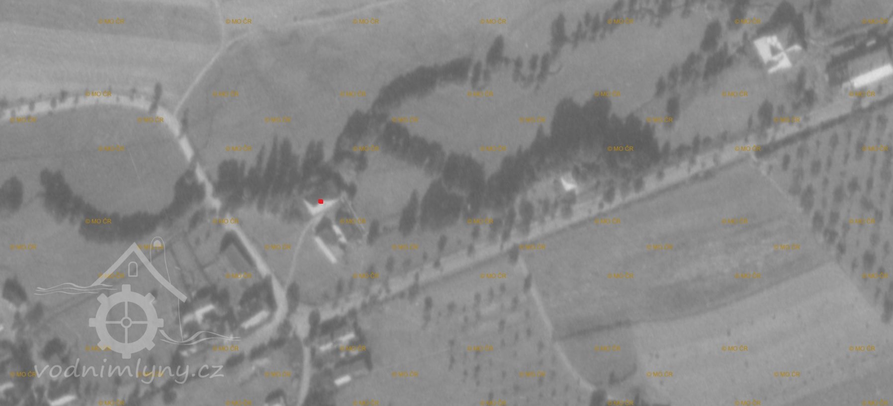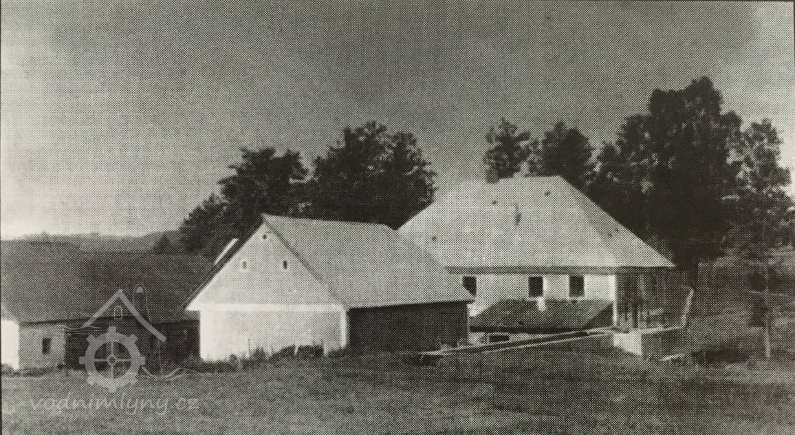 1950 – na leteckém snímku jsou budovy zřetelně viditelné i s betonovým náhonem.