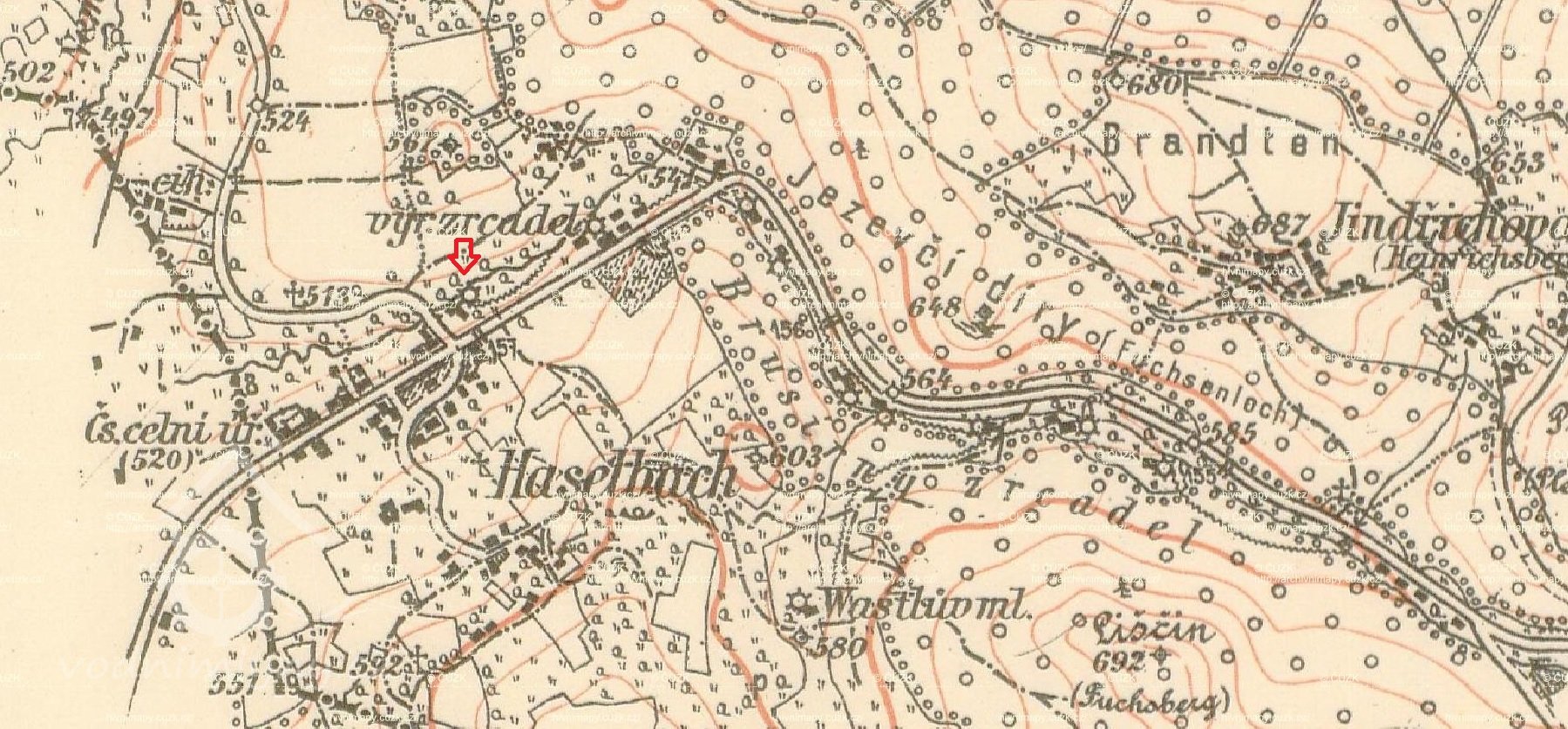 severně od původní vsi