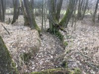2020 - Z objektů je zřetelná část betonového koryta, dlouhý, místy zpevněný náhon a hromada kamení.