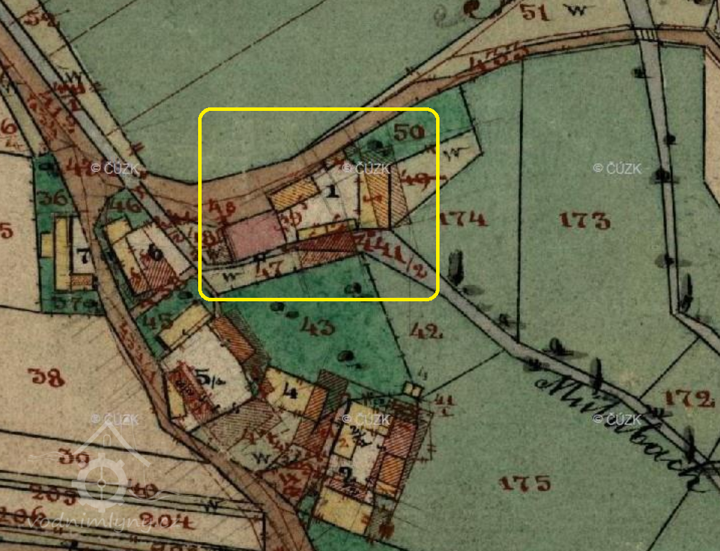 PopisV r. 1930 zde bylo 1 kolo na svrchní vodu, průtok 0,056 m3/s, spád 4 m, výkon 5,5 k.