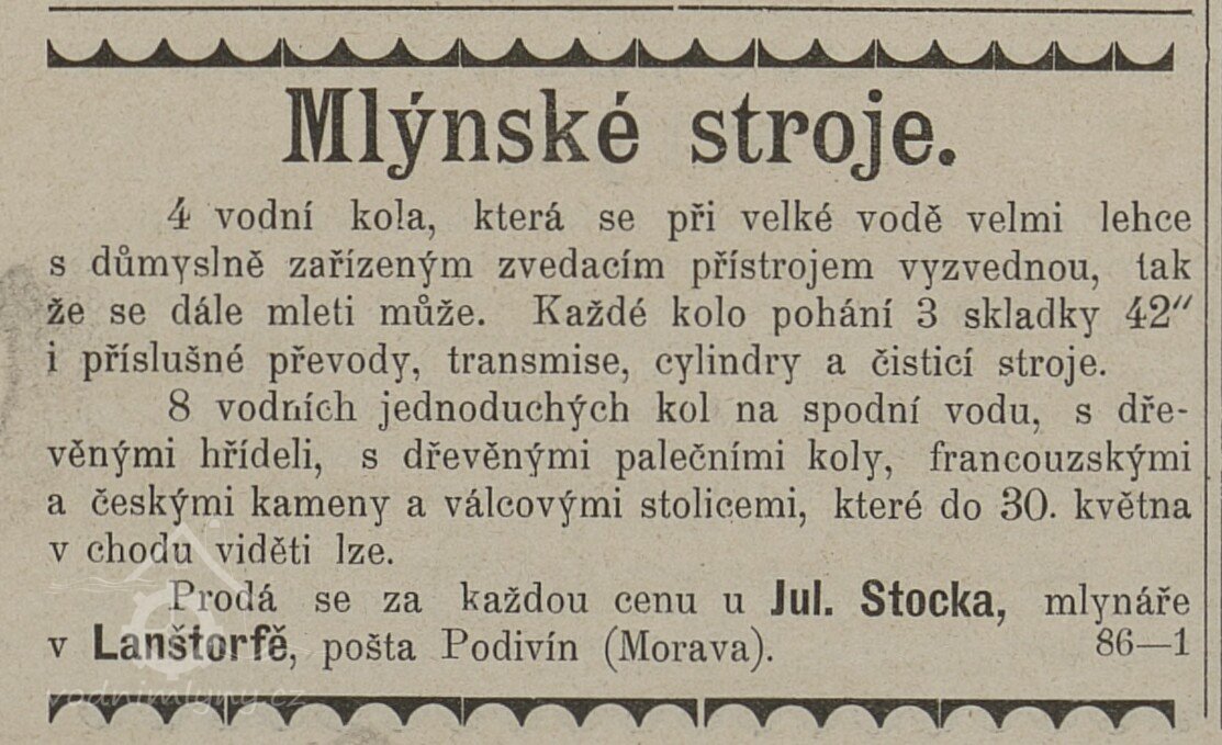 V roce 1899 byl mlýn rekonstruován: byl vystavěn o dvě patra, voda se na něj naháněla stavem o 7 stavidlech, mlýn byl výhradně zařízen na selské mletí.