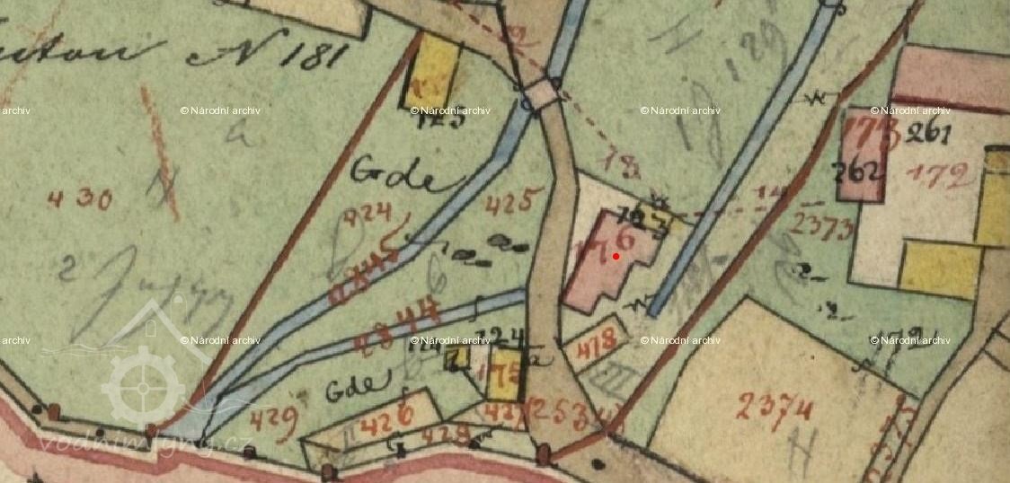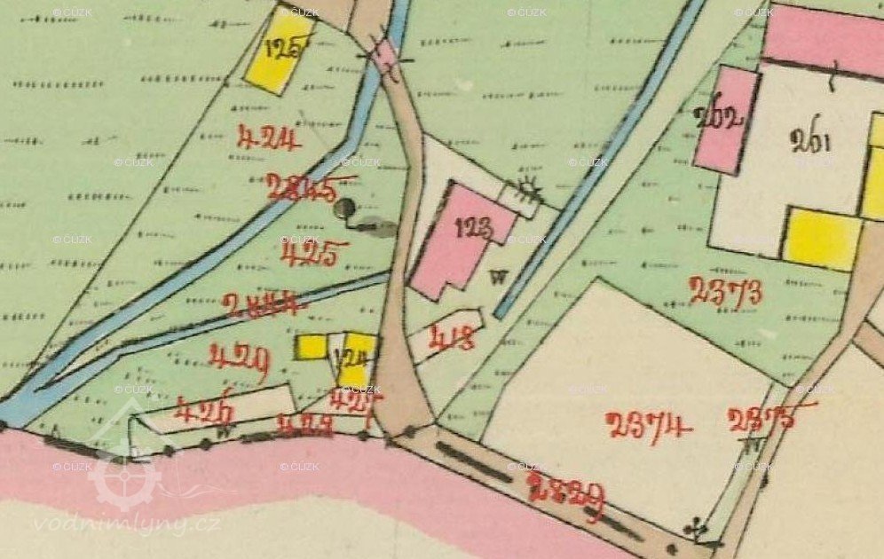 PopisV r. 1930 zde bylo 1 kolo na svrchní vodu, průtok 0,098 m3/s, spád 5,3 m, výkon 4,5 k.