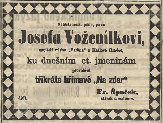 Někdy v této době vznikl nejspíše druhý mlýn, protože v roce 1699 se objevuje poprvé zmínka o 2 spolu sousedících mlýnech v Předměřicích, jež měl od města Hradce Králové najaty Jakub Kumpricht. Ze mlýna platil 100 zl. činže do důchodu, ročně měl vykrmit 2 vepře a odevzdat 2 korce mouky. Mlynář pod pokutou nesměl zvyšovat stavidla, aby nepoškozoval mlýny v Předněřicích a Kydlínovský, skrz březhradský rybník musel být po celý rok zachován volný průtok. Opravy si mlynář zajišťuje na vlastní náklad bez nároku na slevu na nájemném, dříví dostává z městských lesů za úhradu. Počátkem následujícího století se začaly rozlišovat jménem – Na starých a Na nových. Jeden byl o 7 složeních s jahelkou, druhý jen o 2 složeních. Roku 1716 město Hradec Králové prodalo oba mlýny Václavu a Marianě Maršonovým. O rok později Jakub Kumpricht koupil od města Hradce Králové pusté místo o výměře 30 loktů délky a 20 loktů šíře, kde se říkalo na Budíně. Na něm při Březhradském náhonu postavil s povolením královéhradecké městské rady nový mlýn o 2 složeních, který od té doby nese jméno Budín. Mouku z něho byl Jakub Kumpricht povinen zdarma dávat městským radním k výročním slavnostem a na posvícení.12.2.1735 koupili tento mlýn od Jakuba Kumprichta Václav a Majdalena Šťastní za 600 zl., ale již o 5 let později je připomínán jako jeho vlastník František Štěpán. Ten ho prodal roku 1747 předměřickému mlynáři Janu Střemchovi a kydlinovskému mlynáři Matěji Maršonovi za 1 900 zlatých rýnských, čímž mezi nimi byly ukončeny dlouholeté spory kvůli stavidlům u mlýna Budína. Oba kupující prohlásili, že mlýn zruší a zavázali v kupní smlouvě sebe, své dědice i budoucí, že na tomto místě více žádný mlýn nepostaví. Vedle toho však museli převzít povinnost, že i ze zrušeného mlýna budou městu Hradci Králové platit nájemné tzv. dominikální 120 zlatých rýnských ročně. To se jim však asi nelíbilo, takže nakonec ke zrušení Budína nedošlo. V letech 1750-1765 byl majitelem Budína Jan Střemcha se svou manželkou Annou, rozenou Maršonovou. Za nich měl již 3 složení. V letech 1765-1770 ho užíval Jan, starší syn Jana Střemchy. 1. dubna 1770 ho převzal jako dědictví za 1.500 zl. mladší syn Václav, a to i s chalupou, zvanou Fruktovou, s rolí Moravankou, obíckou mezi mlýnem a zmíněnou chalupou a částí luk u Malšovic. Roční nájemné 130 zl. Ve mlýně zřídil v roce 1794 čtvrté složení, zároveň žádal, aby mu magistrát snížil nájem za "neužitečné měsíce" leden a únor o 6 zl.40 kr. Roku 1803 Václav Střemcha prodal mlýn s 18 jitry a 728 čtverečnými sáhy pozemků Janu Morávkovi a jeho manželce Kateřině z Předměřic za 47.500 zl. rýn. Roční činže ze 3 složení s přistrkávací jahelkou činila s přídavkem 10 zl. celkem 130 zl., ze 4. složení 40 zl., celekme tedy 170 zl., ve čtvtrtletních splátkách 42 zl. 30 kr. Jakožto budova vrchnostenská byl mlýn osvobozen od kontribuce kromě té ze svobodných gruntů a s výjimkou válek od ubytování vojska. Veškeré opravy na mlýně platí majitel, opravy vodního díla hradí do ceny 10 zl., nad 10 zl. přisoívá magistrát. (ceník stavebního dříví v příloze). 28.11.1809 manželé Morávkovi prodali mlýn s novým čp.64 manželům Josefu a Anně Duškovým za 62.000 zl. rýn.. 1.1.1827 se dle postupní smlouvy z 24.11.1826 ujal Budína jejich syn Jan s manželkou Ludmilou roz. Liebichovou za 10.000 zl. konv.m. O 6 let později mlýn koupili Václav a Barbora Šubrtovi. 10.8.1836 byl královéhradecký magistrát požádán o povolení zřízení olejníku na tlučení oleje z řepkového semene, který by byl postaven při mlýně na levém břehu náhonu. Této žádosti bylo následně 31.8.1837 vyhověno, roční nájem z olejny 20 zl. konv.m..
