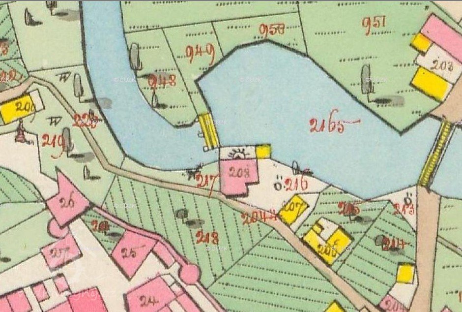 1527 Jan II. z Kácova: "...Přidáván jim druhý kus řeky... Tak aby jim ten vršek kus řeky, který leží od mostu, kterýž jest pod starým hradem vzhůru až k druhému mostu, který pod mlýnem jest, byl jejich vlastní a dědičný."