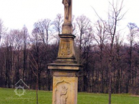 kříž z roku 1875, který nechali postavit Franz Leiel a Klement Barfus, 2015, © https://www.loucna-nad-desnou.cz/, (Prvky na obrázku: epigrafické památky (nápisy, datování aj.))
