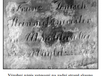 Nápis na zadní straně sloupu Nejsv. Trojice, 06 2005, © Richard Jašš, (Prvky na obrázku: epigrafické památky (nápisy, datování aj.))