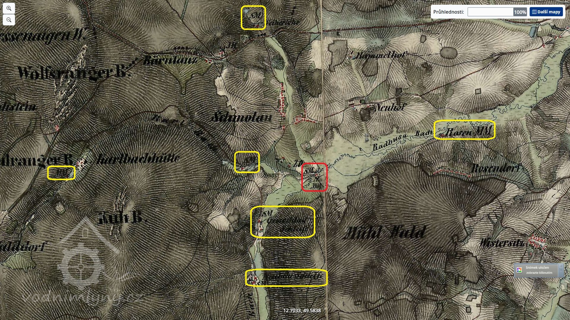 Nové mlýny, Rormajstrovský mlýn, Rohrmühle s vodárnou »