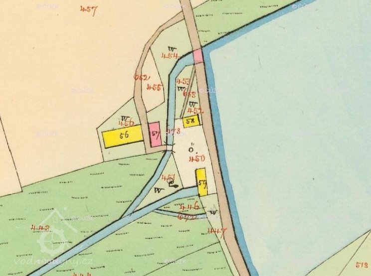 Podle ústní tradice v místě pod hrází Mrštínského rybníka v trojúhelníku tvořeném hrází a dvěma odtokovými kanály z rybníka stál mlýn a pila. Mlýn stál u kanálu blíž přístupové cestě ze silnice, u druhého kanálu stála pila.